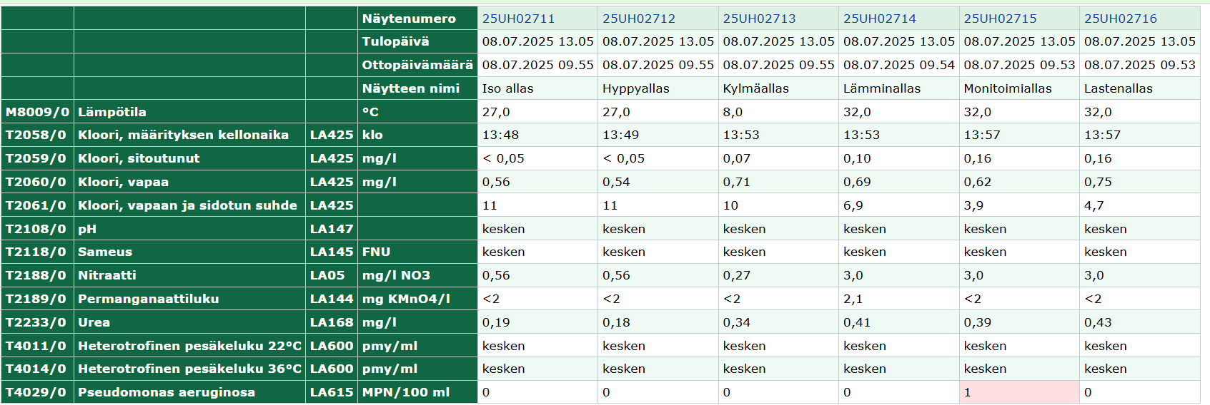 Päivitys 11.7.25. Monitoimialtaan puhdistustyöt on saatu päätökseen, ja laboratorio­tutkimuksessa altaasta ei enää havaita pseudomonas-bakteeria. Allas on jälleen normaalisti asiakkaidemme käytössä.